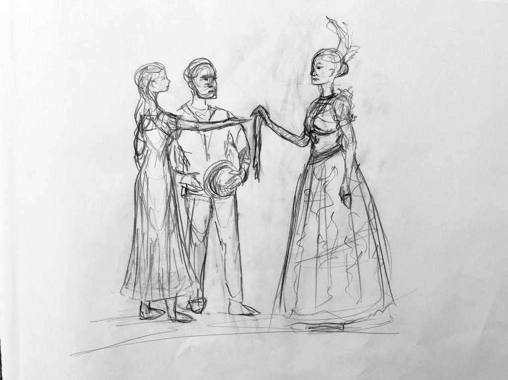 As Albrecht and Hilarion fight—a fight so palpable in its aggression, even though physical contact is limited—the chief Landlord circles slowly around them until his gaze reaches Hilarion’s eyes, a gaze of such force that it brings the confrontation to an abrupt end. Squeezing Albrecht’s jaw in the vice of his grip, the Landlord seals Albrecht’s fate with an angry kiss.