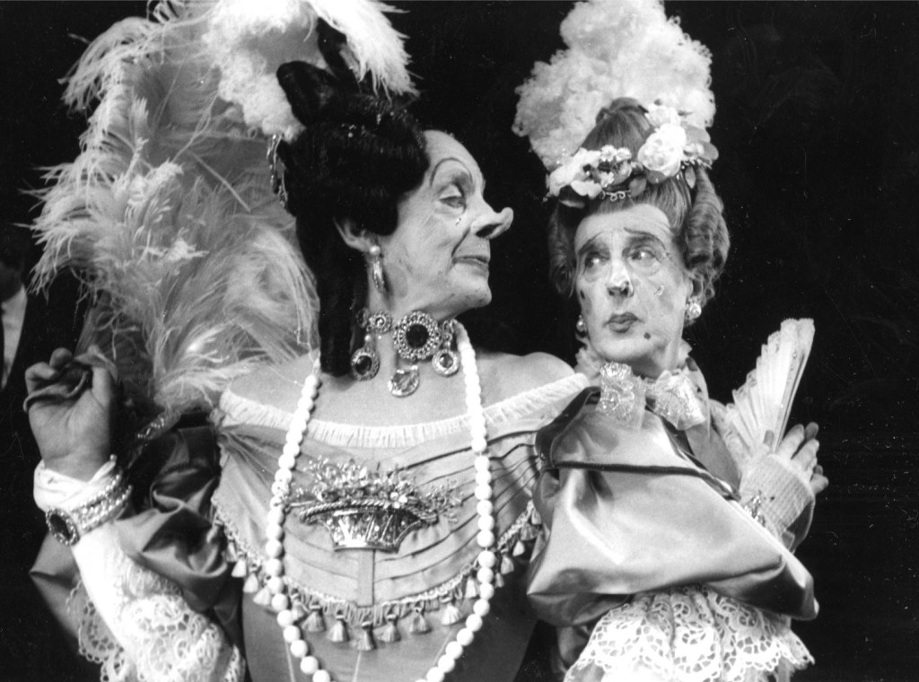 Further, there are additional layers of femininity to these characters. Firstly, with their exaggerated costumes and comedic manners, they recognisably reference the tradition of the Pantomime Dame, so familiar to audiences in this country. Secondly, Ashton had performed the Prince in Andrée Howard’s 1935 Cinderella, and according to David Vaughan (234) was influenced by some aspects of the characterisation, costumes and wig of the sister which Howard choreographed, designed and performed herself. And thirdly, both Ashton and Helpmann were known for their mimicry, notably of women, and both were said to have been influenced by specific “female eccentrics” (Kavanagh 365): Helpmann by Jane Clark (renowned for her feistiness) and comedienne Beatrice Lillie (Vaughan 234), and Ashton himself by Edith Sitwell (Kavanagh 365).
